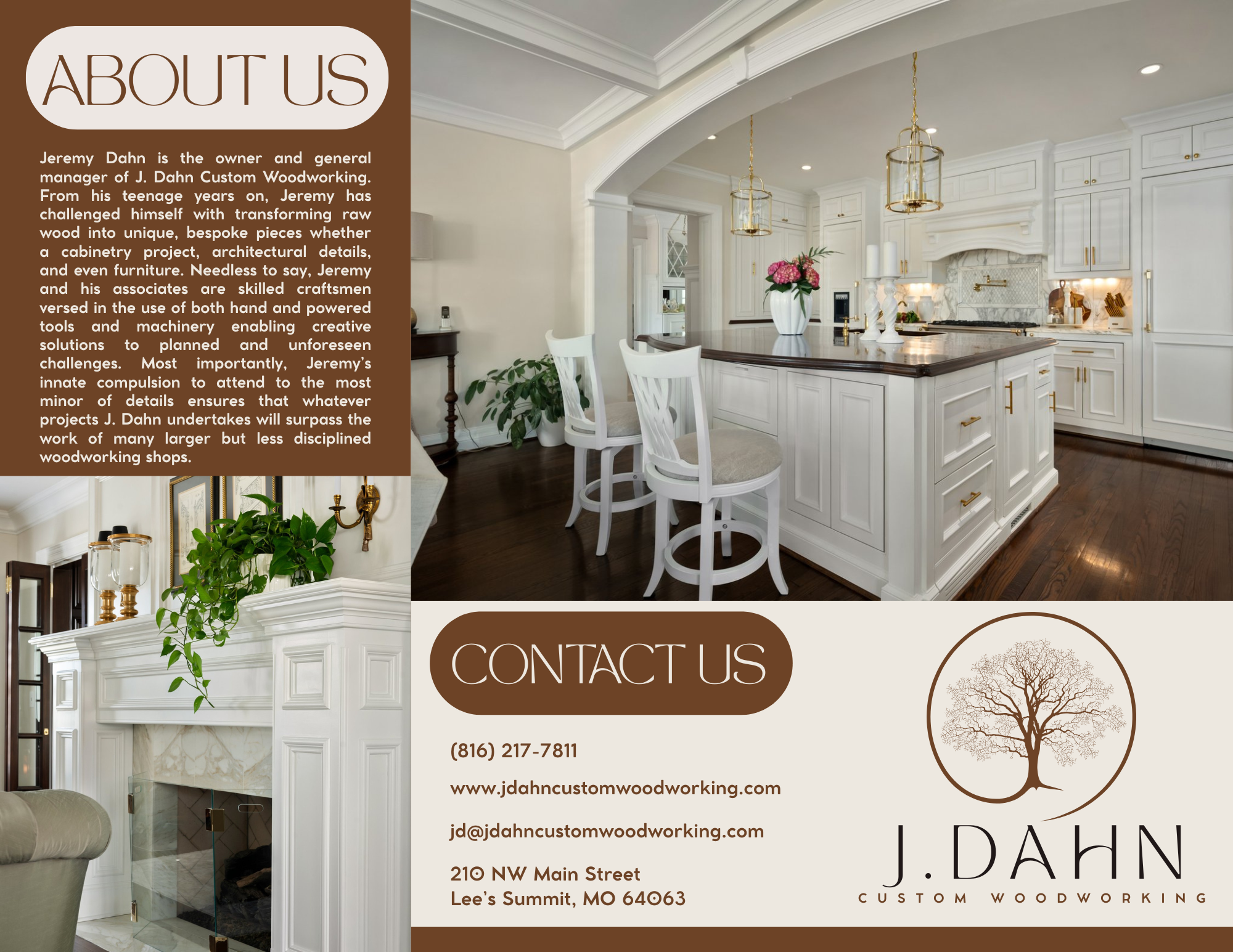 Create an elegant, yet professional brand and portfolio for a custom woodworking looking for clients in the local Kansas City area.