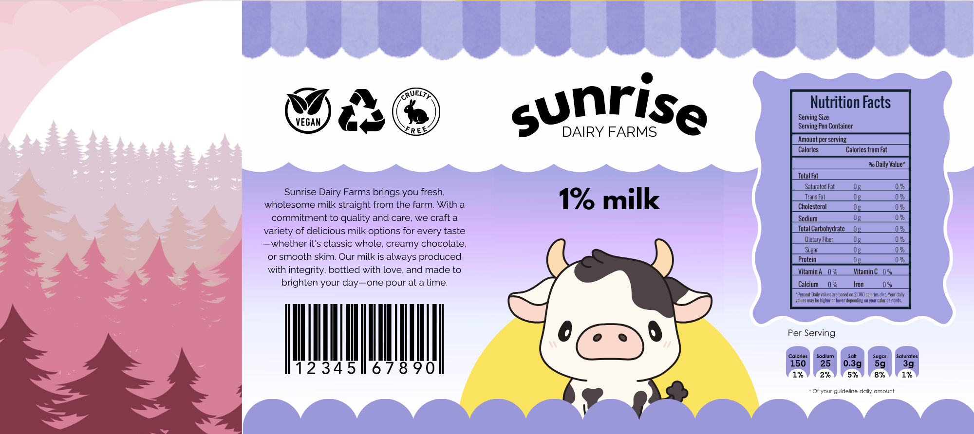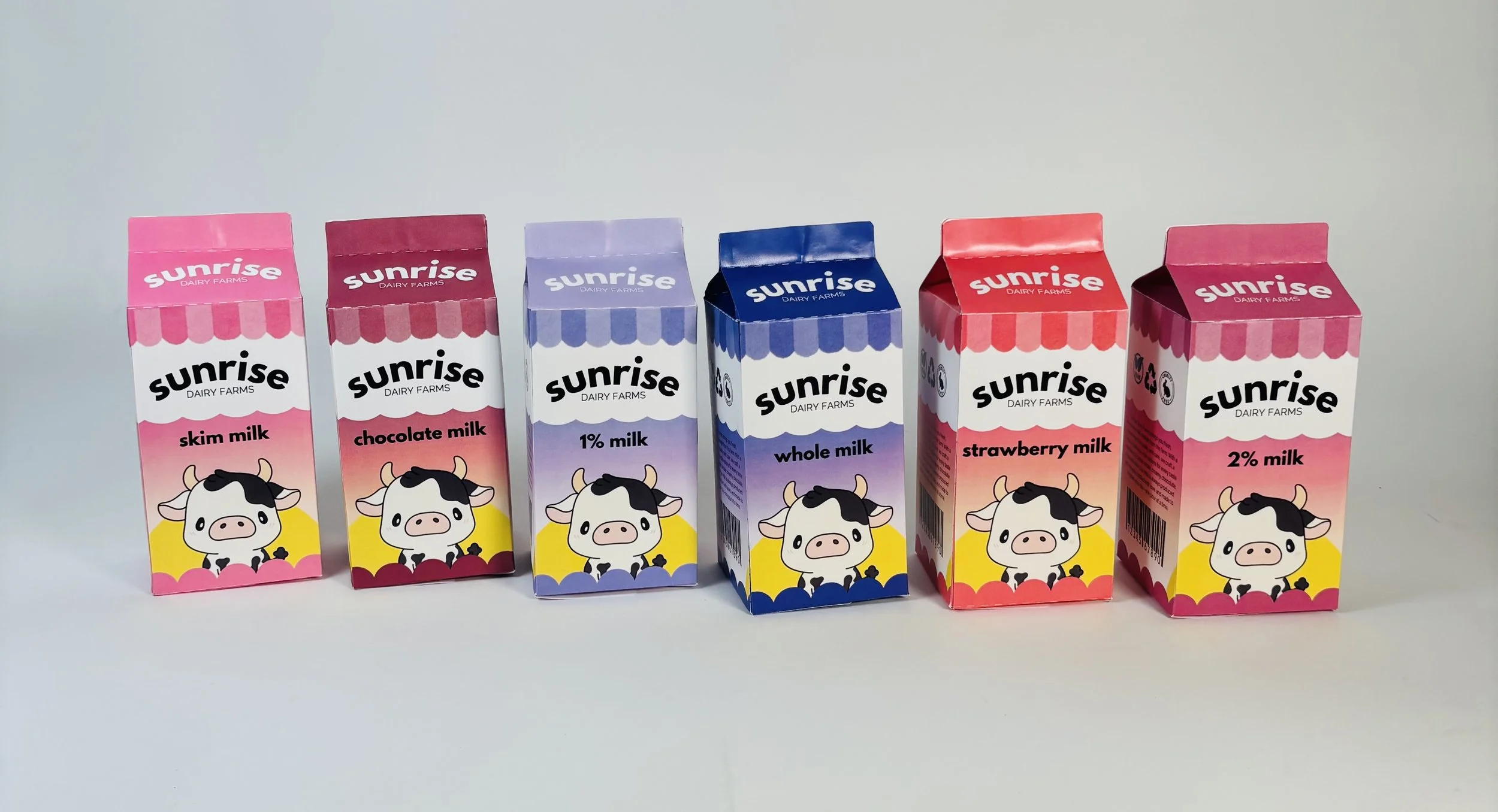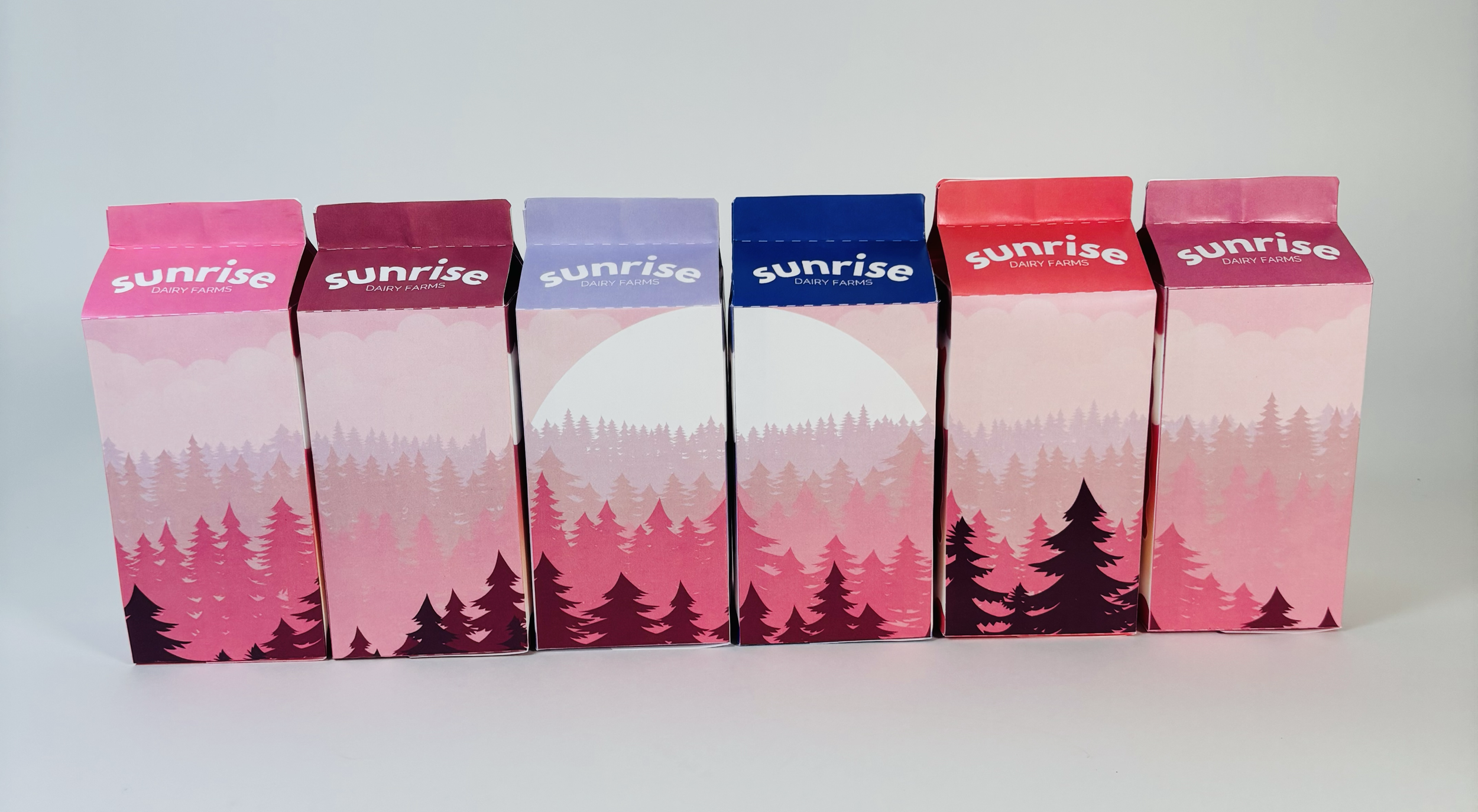 A modern rebrand for a dairy product line with sunset themed colors and fresh visuals. The packaging design emphasizes simplicity and approachability for everyday consumers.