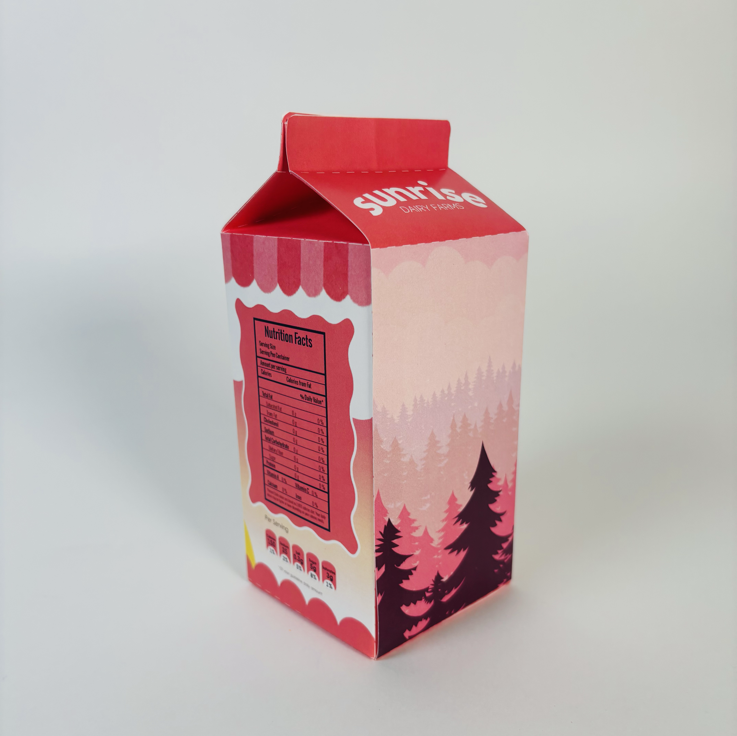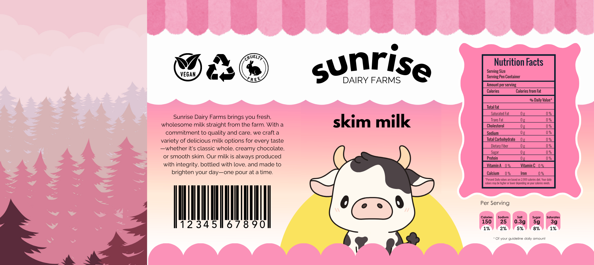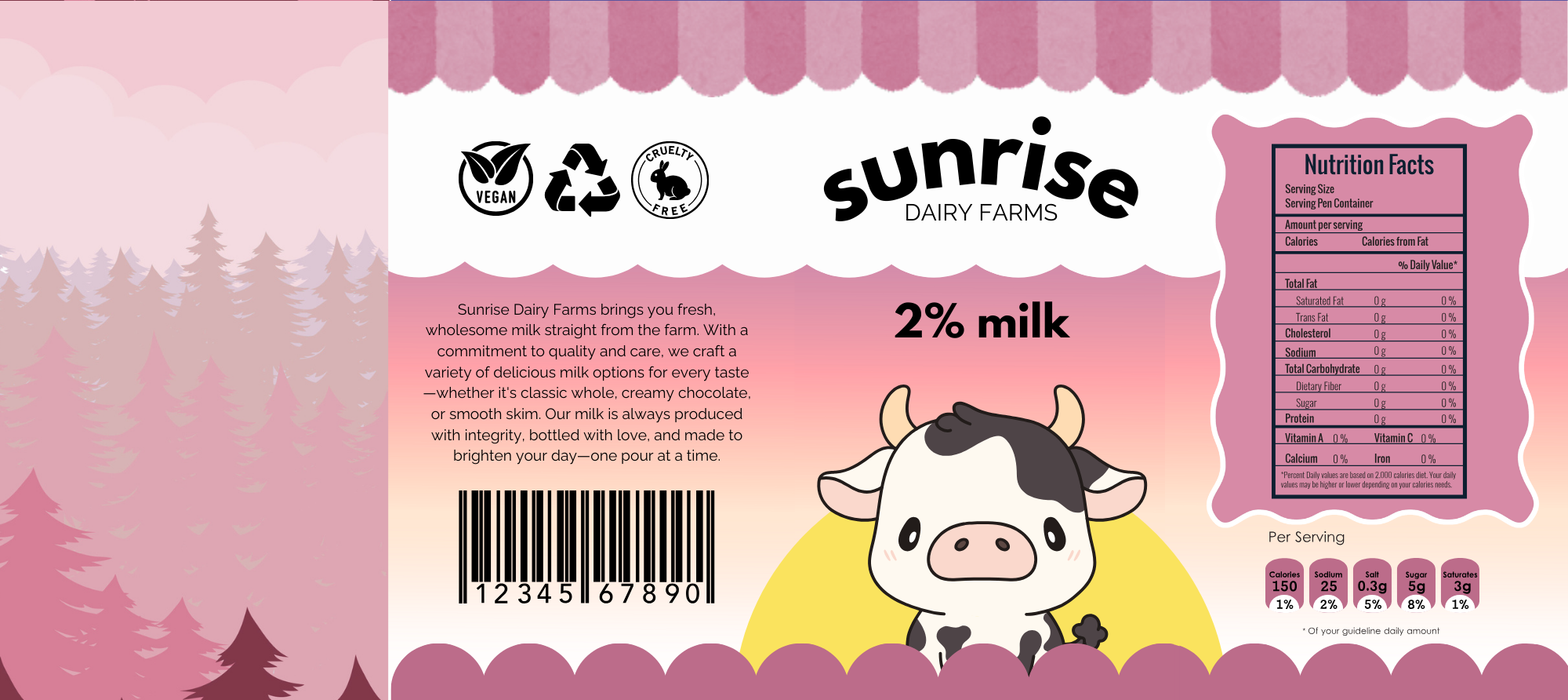 A modern rebrand for a dairy product line with sunset themed colors and fresh visuals. The packaging design emphasizes simplicity and approachability for everyday consumers.