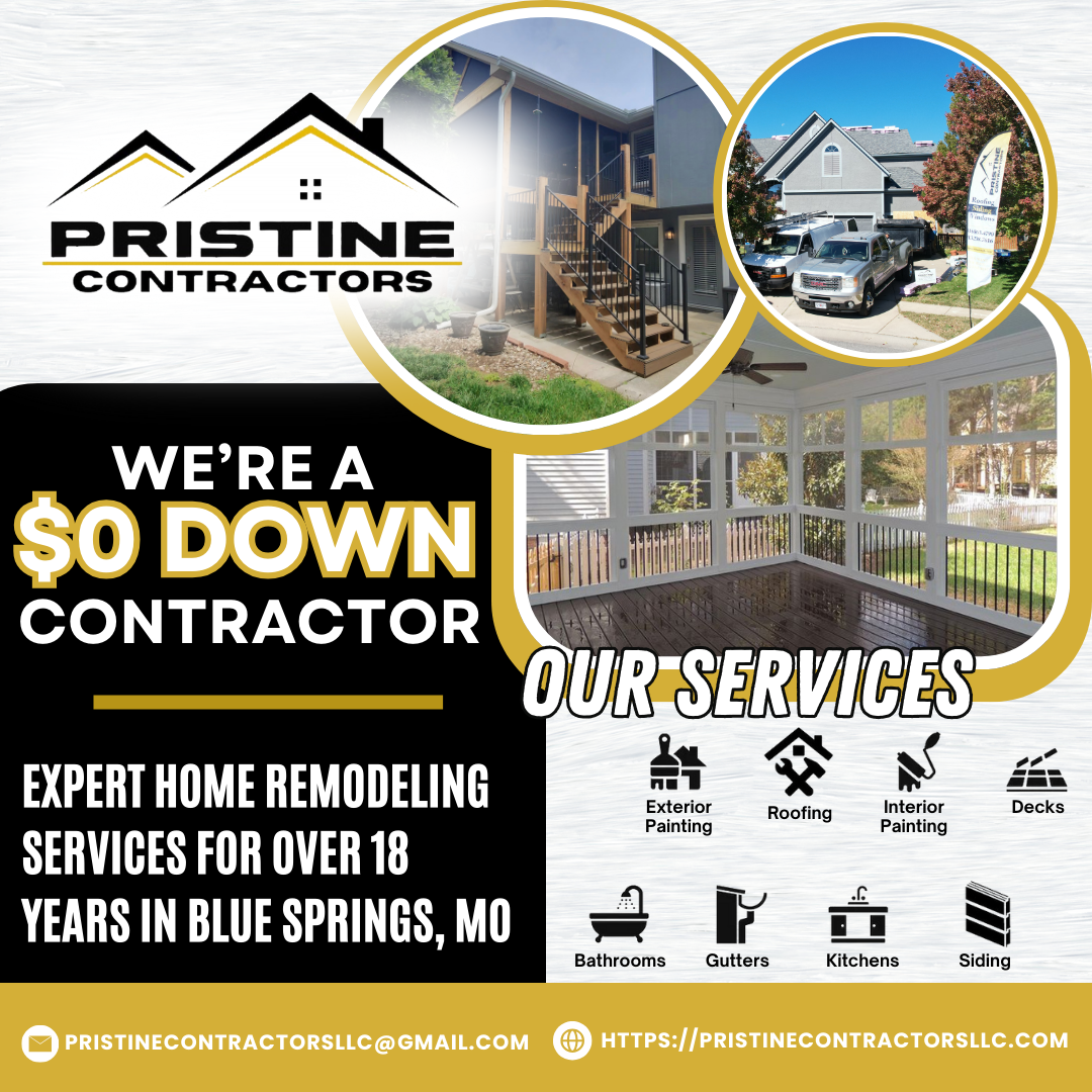Pristine Contractors LLC is a licensed contracting company based in Blue Springs, Missouri, specializing in high-quality residential and commercial construction, remodeling, and renovation projects with a commitment to craftsmanship and client satisfaction.